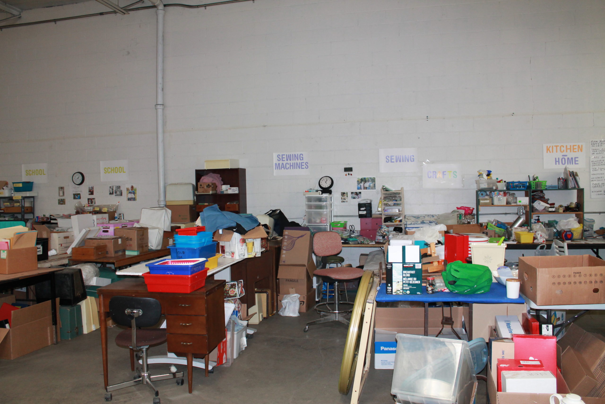 Area for packing sewing machines, fabric, sewing supplies and yarn.